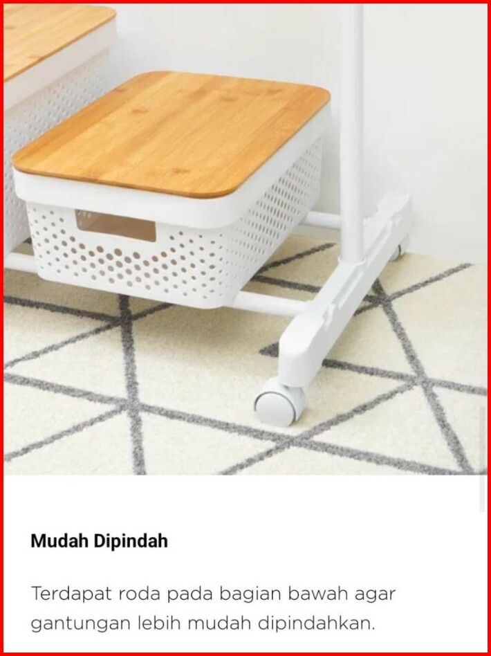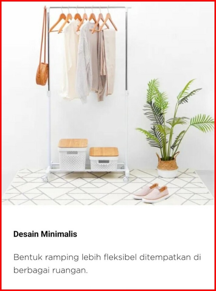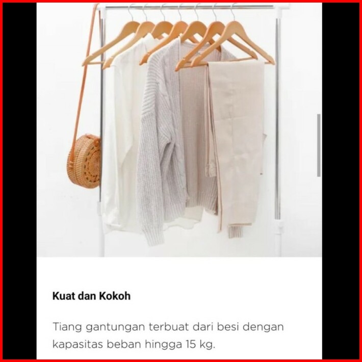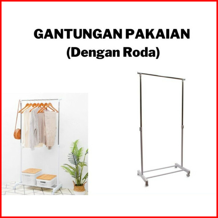 Rak Gantungan Pakaian Baju Berdiri Stand Hanger Single Dengan Roda Putih Minimalis