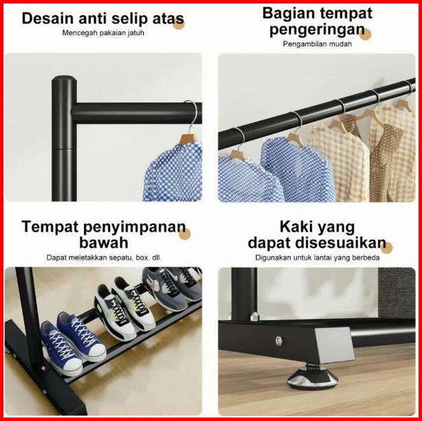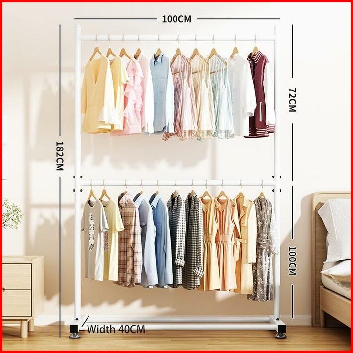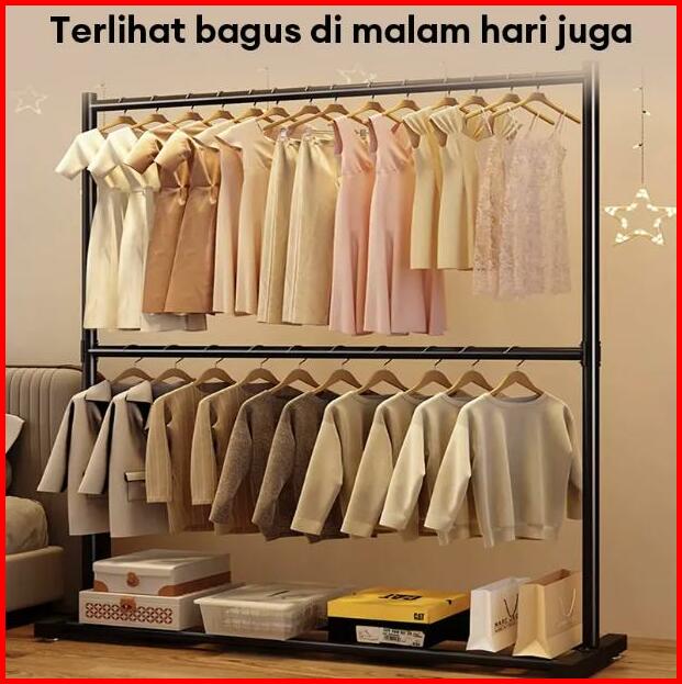 Shenar Rak Gantungan Baju Besi Stand Hanger Double Gawang Baju Jemuran Pakaian Rak Baju Gantung Berdiri Gawang Baju Este