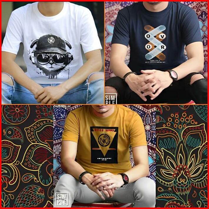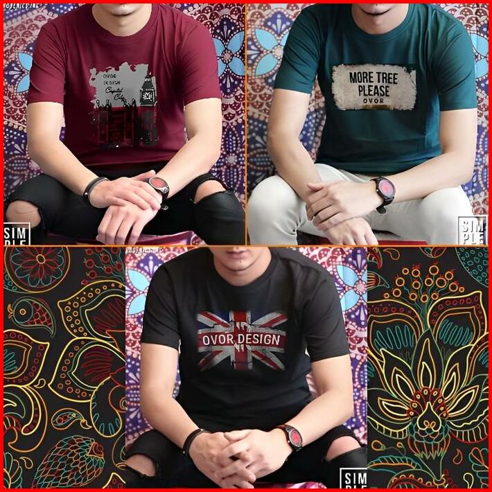 Kaos Pria 3pcs Kaos Distro Baju Pria Dewasa Kaos Oblong Lengan Pendek Bahan Katun