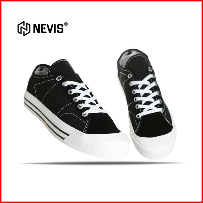 Nevis Boston Sepatu Sneakers Casual Pria Wanita Original Hitam Putih
