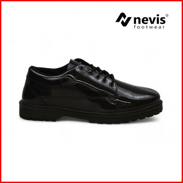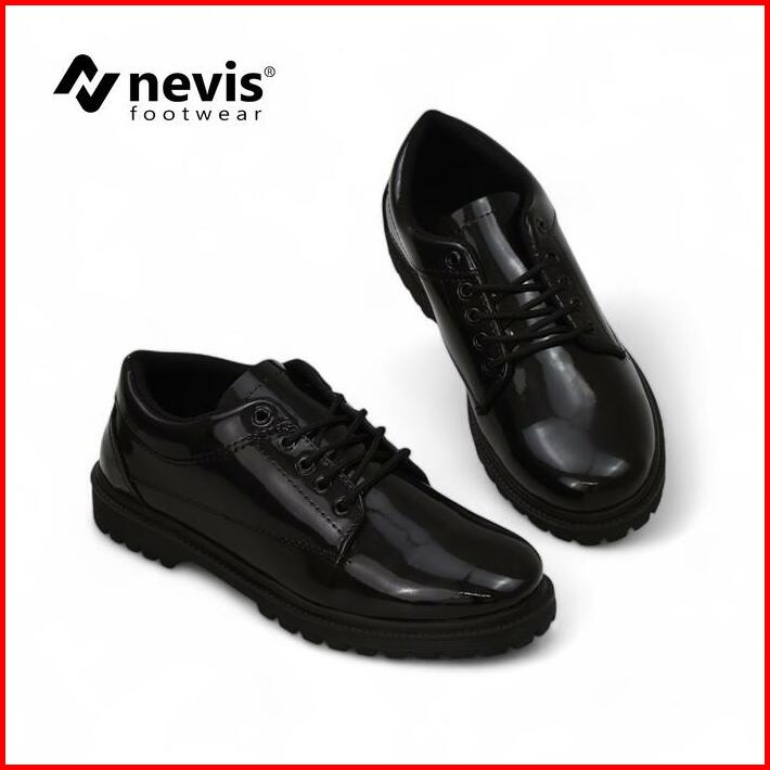 Nevis Valerie Sepatu Formal Pantofel Mengkilap Tali Hitam Glossy Pdh Kerja Pria Shoes