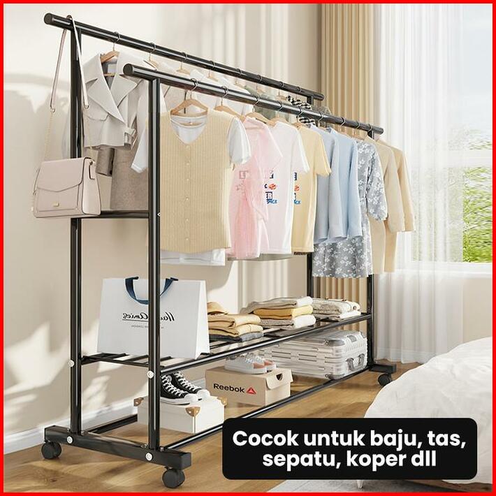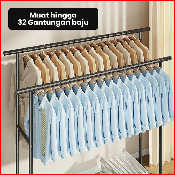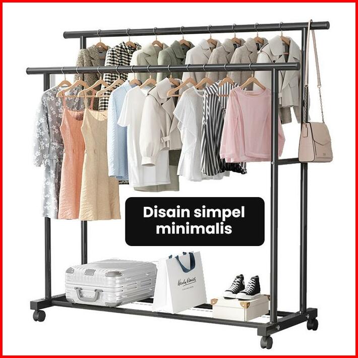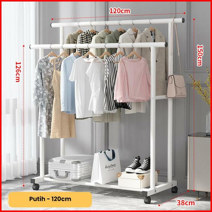 Greenland Double Stand Hanger Rak Gantungan Baju Berdiri Rak Gawang Besi Kuat Putih Hitam Butik Bazar Display Hsh135 Rac