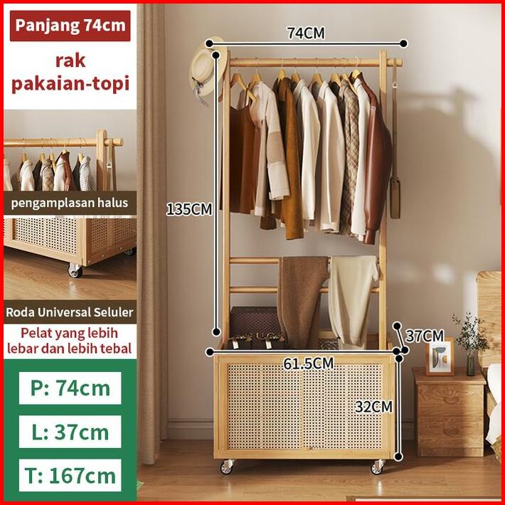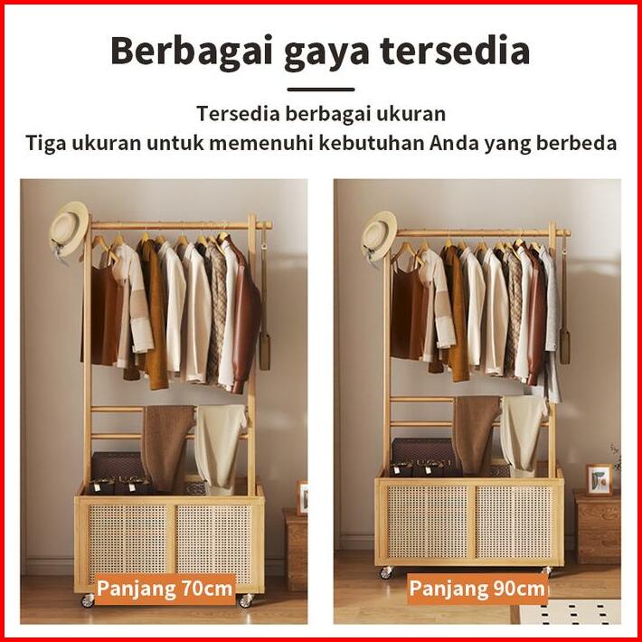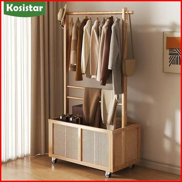 Kosistar Rak Gantungan Baju Kayu Kayu Lemari Pakaian Minimalis Berdiri Stand Hanger Rak Baju Gantung