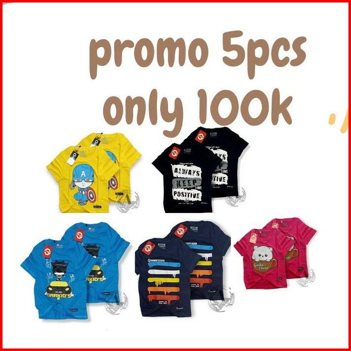 Paket Hemat 5pcs Kaos Anak Usia 1-12 Tahun Baju Kaos Distro Anak Cewek Cowok Perempuan Laki-laki Katun