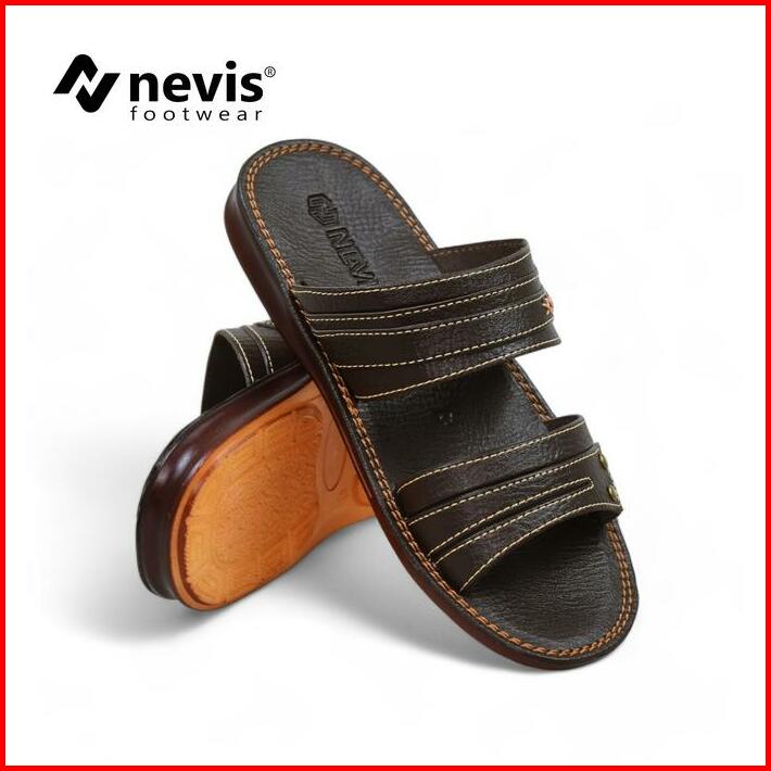 Nevis Sandal Casual Slide Pria Aron Sandal Slop Kulit Cowok Keren Sendal Jepit Kasual