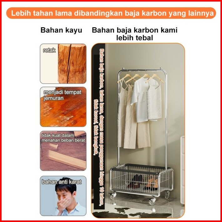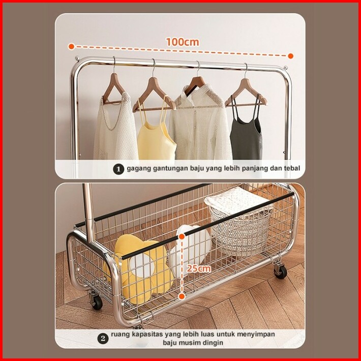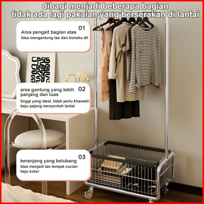 Rak Gantungan Baju Stainless Steel Rak Baju Gantung Aesthetic Gantungan Baju Berdiri 120cm