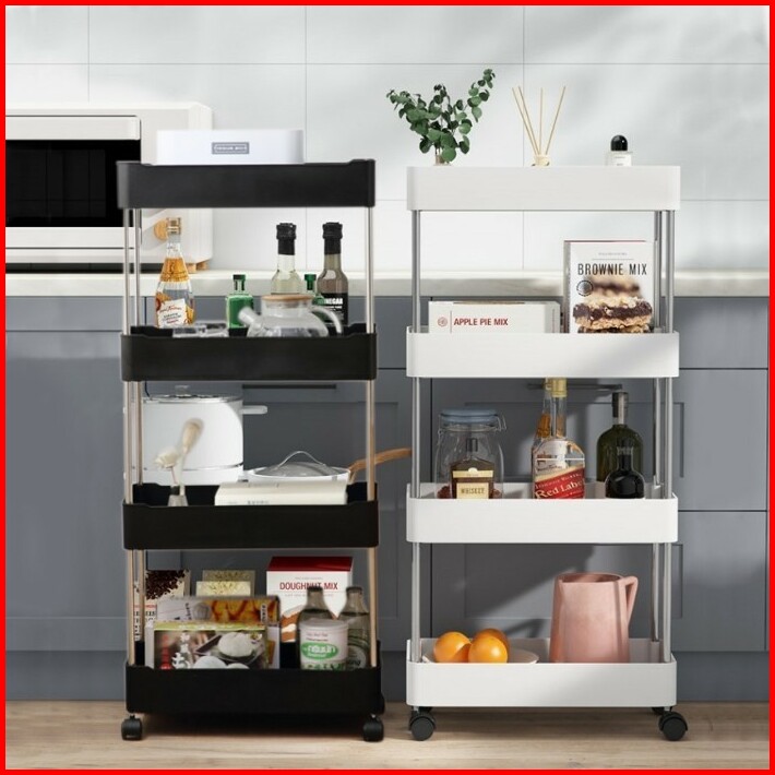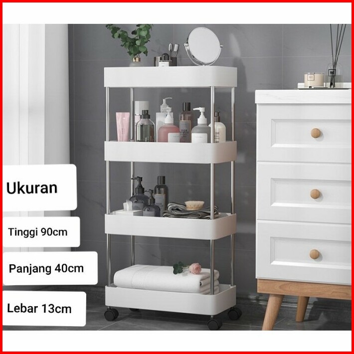 Rak Troli Susun Rak Salon Rak Kamar Mandi Tempat Buku 4 Roda Serbaguna
