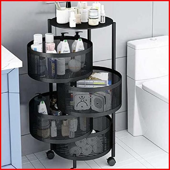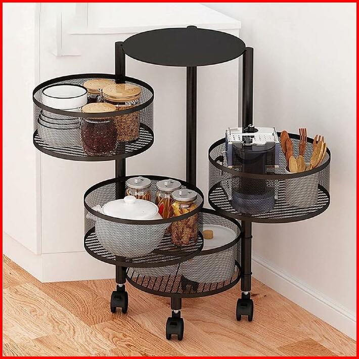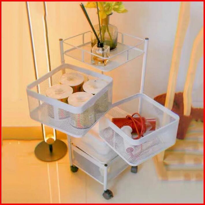 Ks Carbon Steel Storage Rak Roda Troli Putar Full Baja Kotak Bulat Susun Tingkat Serbaguna