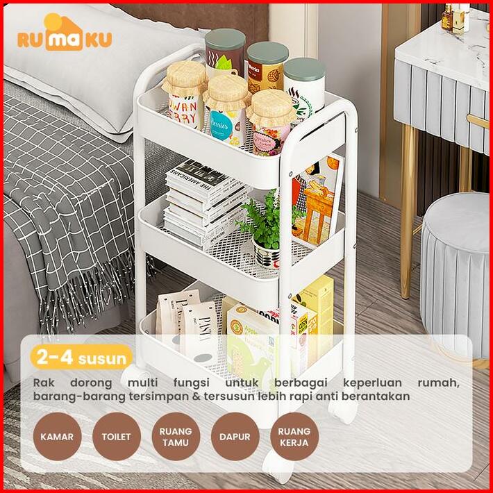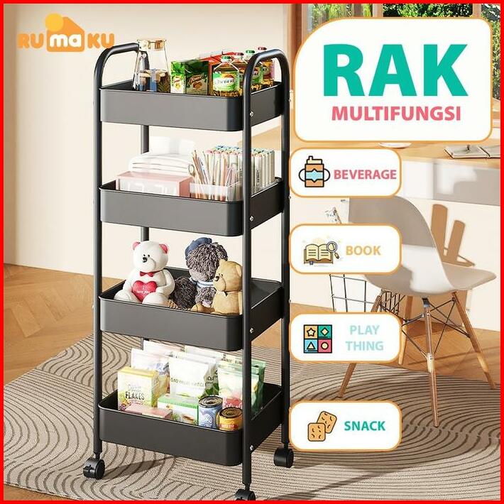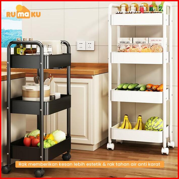 Rumaku Rak Troli Roda Susun Stainless Untuk Dapur Kamar Mandi Salon Kosmetik Ambalan 4 Tingkat Serbaguna Dan Berkualitas