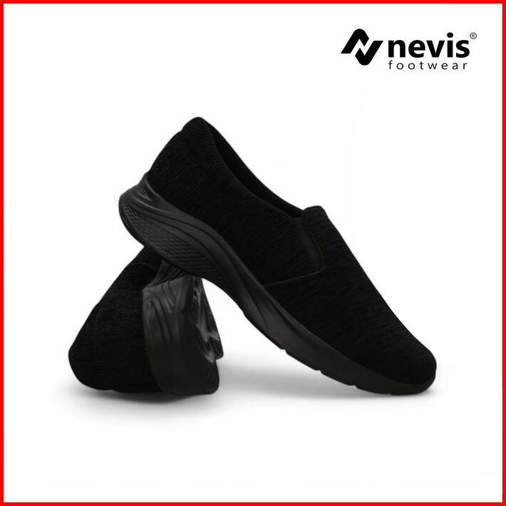 Nevis Sepatu Slip On Casual Pria Wanita Clayton Sneakers Slop Kerja Sekolah Kasual Full Black Hitam Flat Shoes Selop Bla