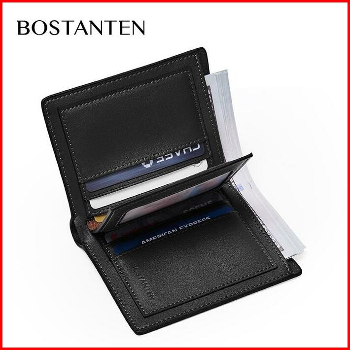 Bostanten Dompet Pria Bahan Kulit Sapi Asli Model Lipat Pendek Hitam Coklat