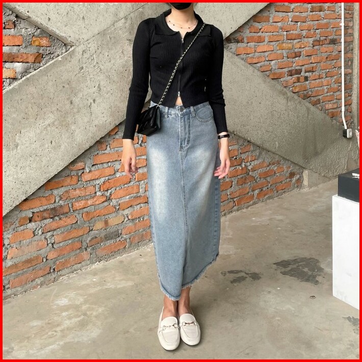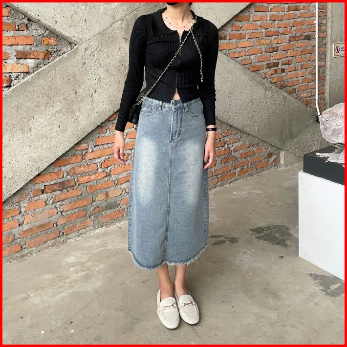 Pg777 Rok Span Jeans 7 8 Wanita Denim Skirt Premium Original Fnr 22