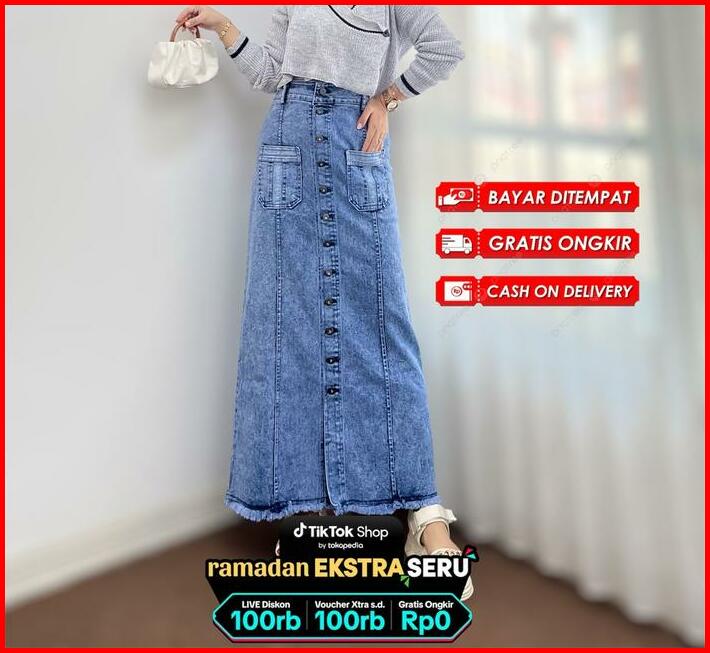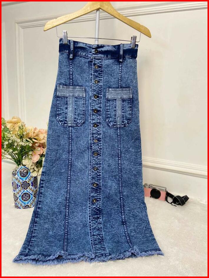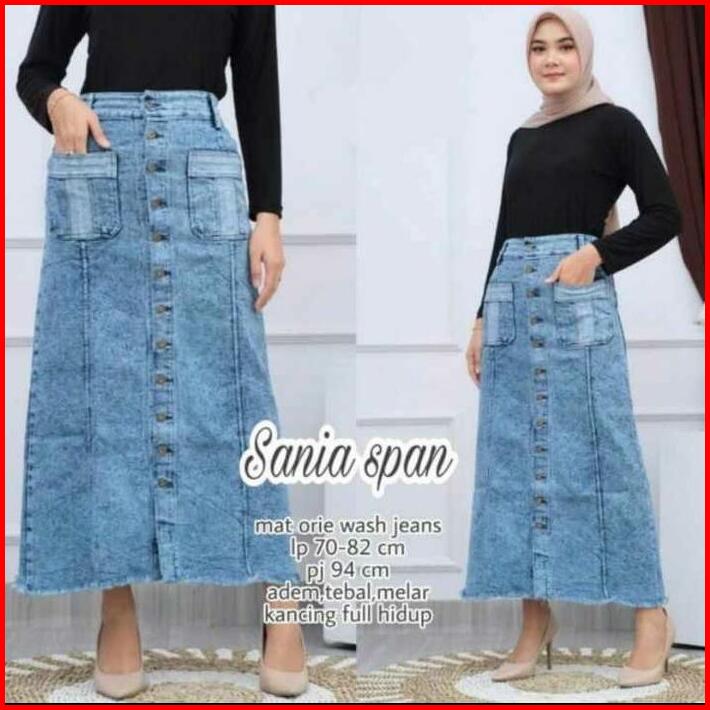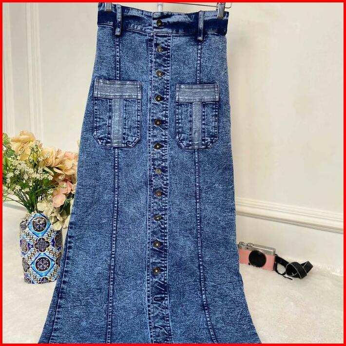 Rok Jeans Streech Skinny Rok Jeans Span Button Aktif By.sania