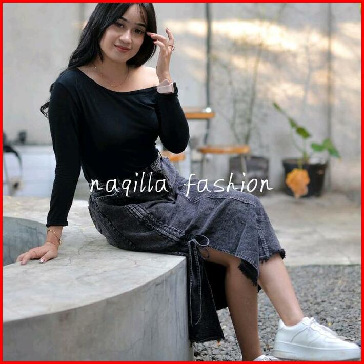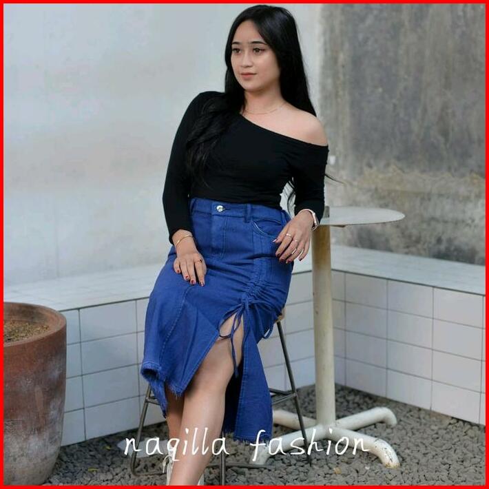 Rok Jeans Span 7 9 Dengan Fariasi Tali Serut Samping