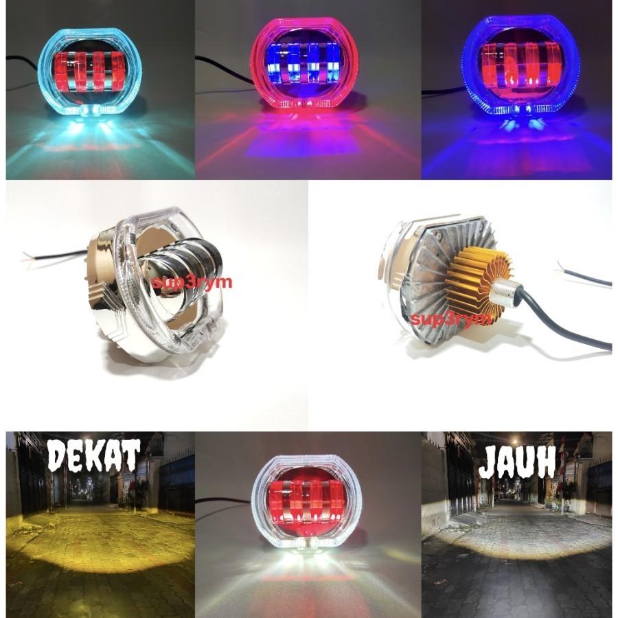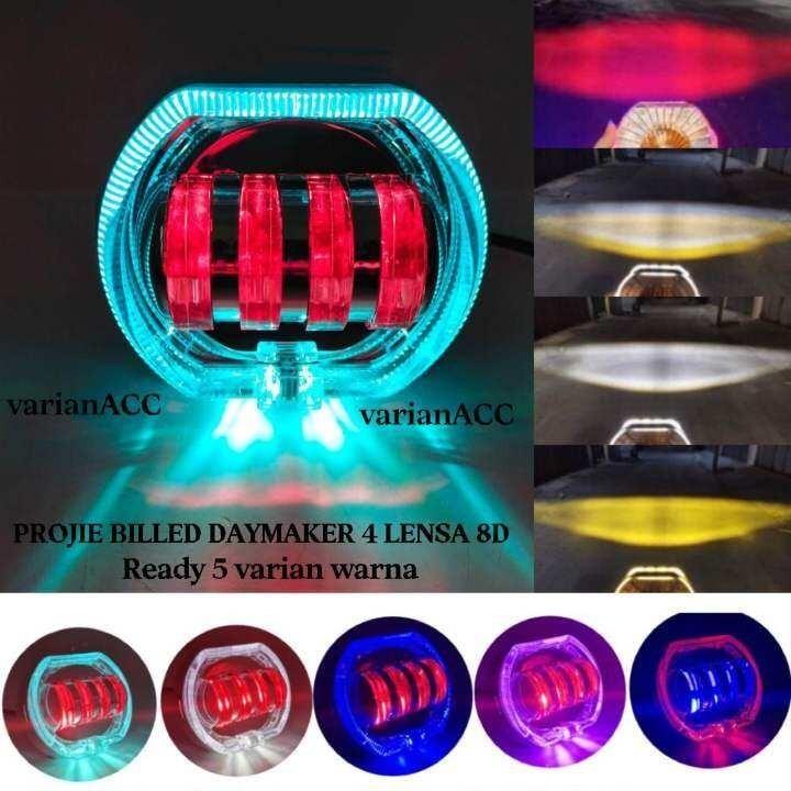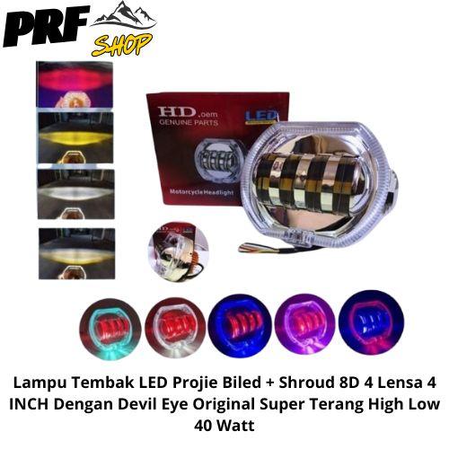 Lampu Tembak LED Projie Biled + Shroud 8D 4 Lensa 4 INCH Dengan Devil Eye Original Super Terang High Low 40 Watt