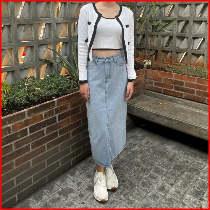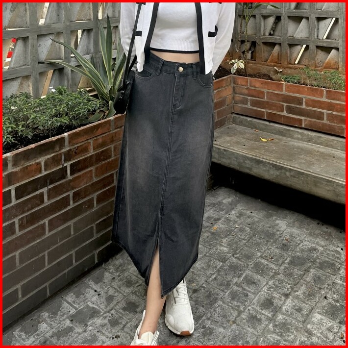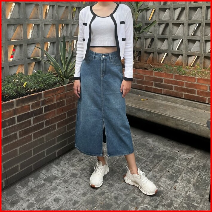 Pg777 Rok Sepan Span Denim Jeans Skirt Maxi Korean Jeans Skirt Fnr 23