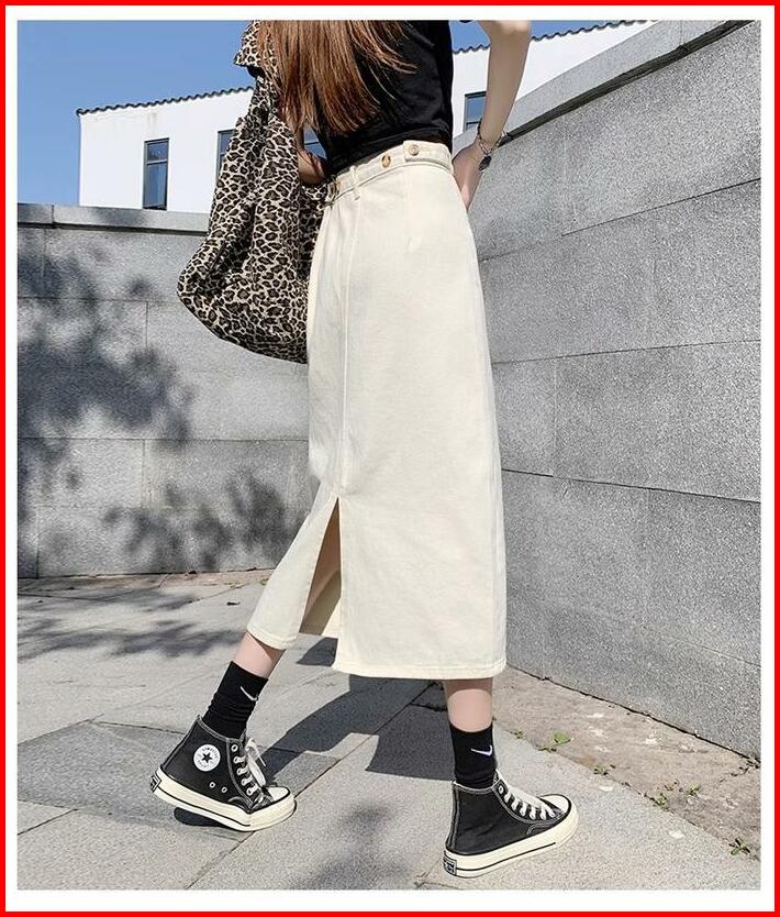 Rok Jeans Wanita Rok Korean Style Rok Span Premium Rok Dengan Belahan Belakang Yang Bisa Disesuaikan Rok Midi A-line Apr
