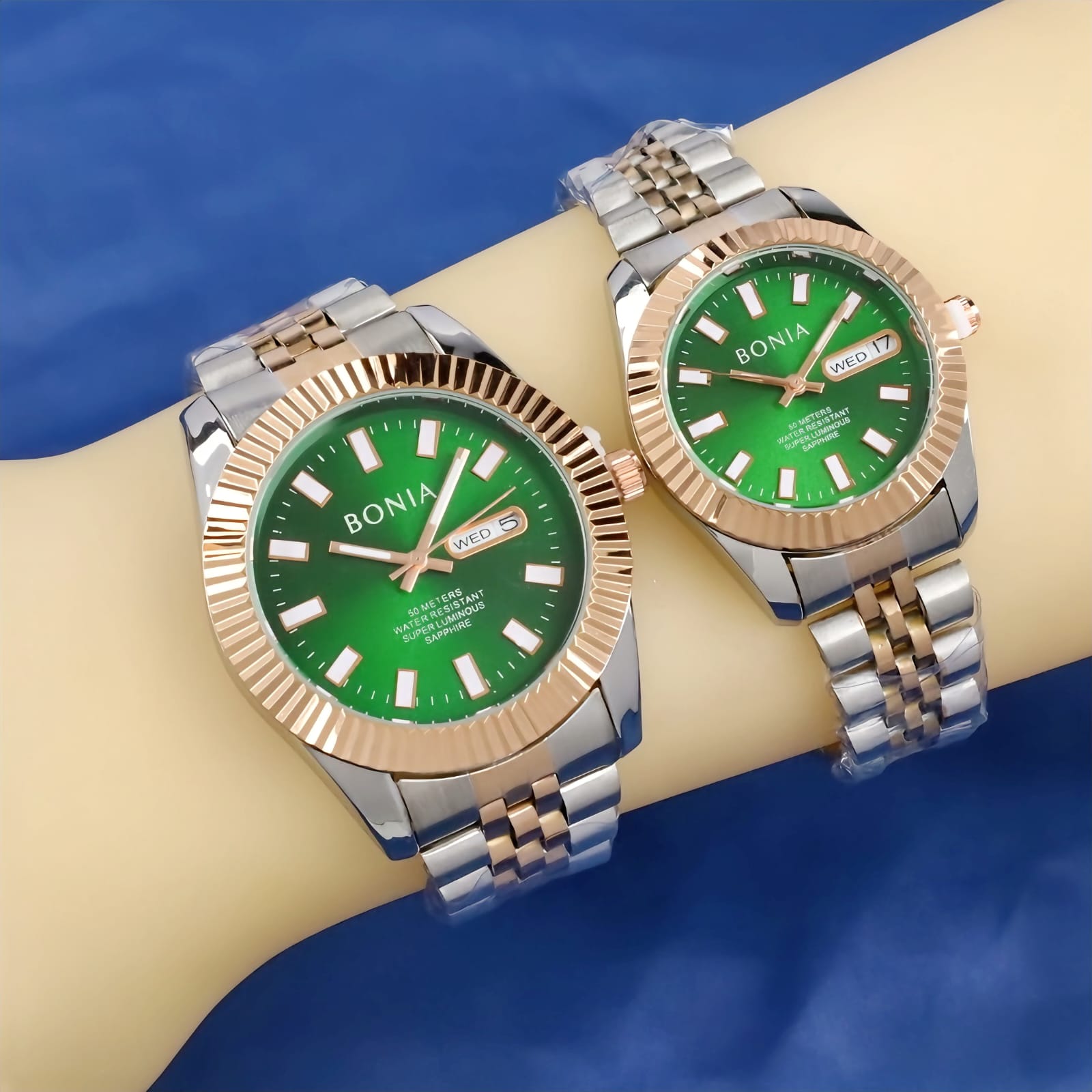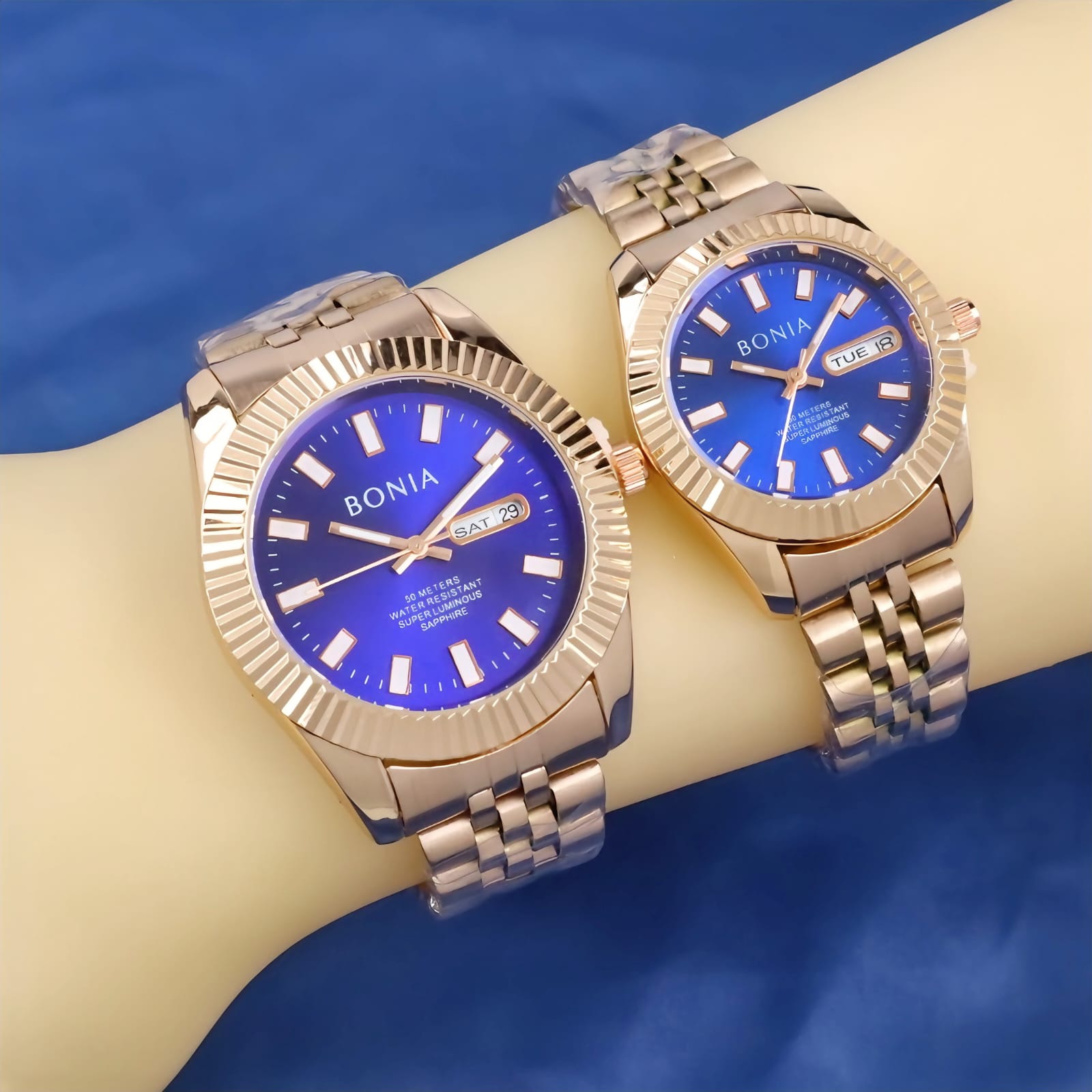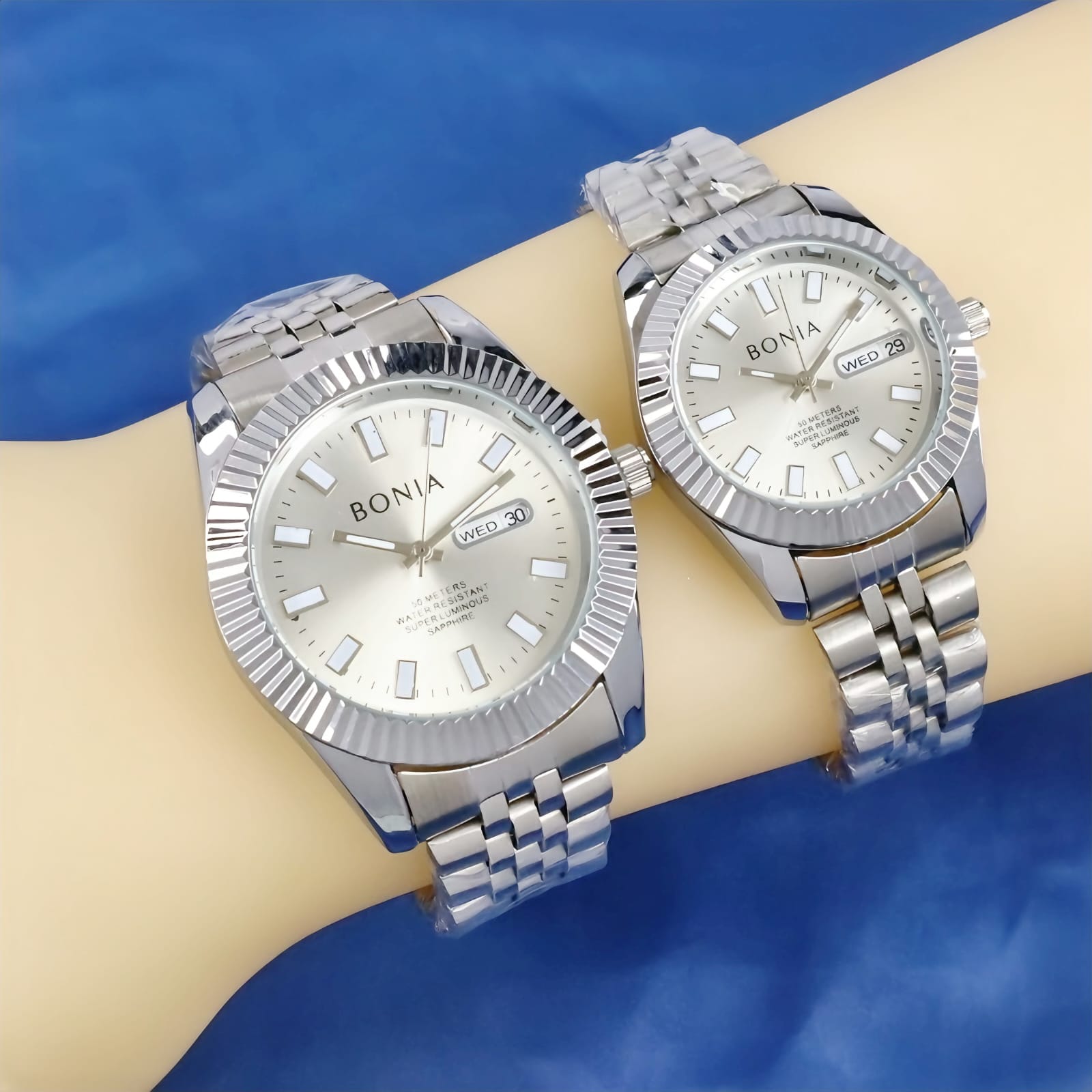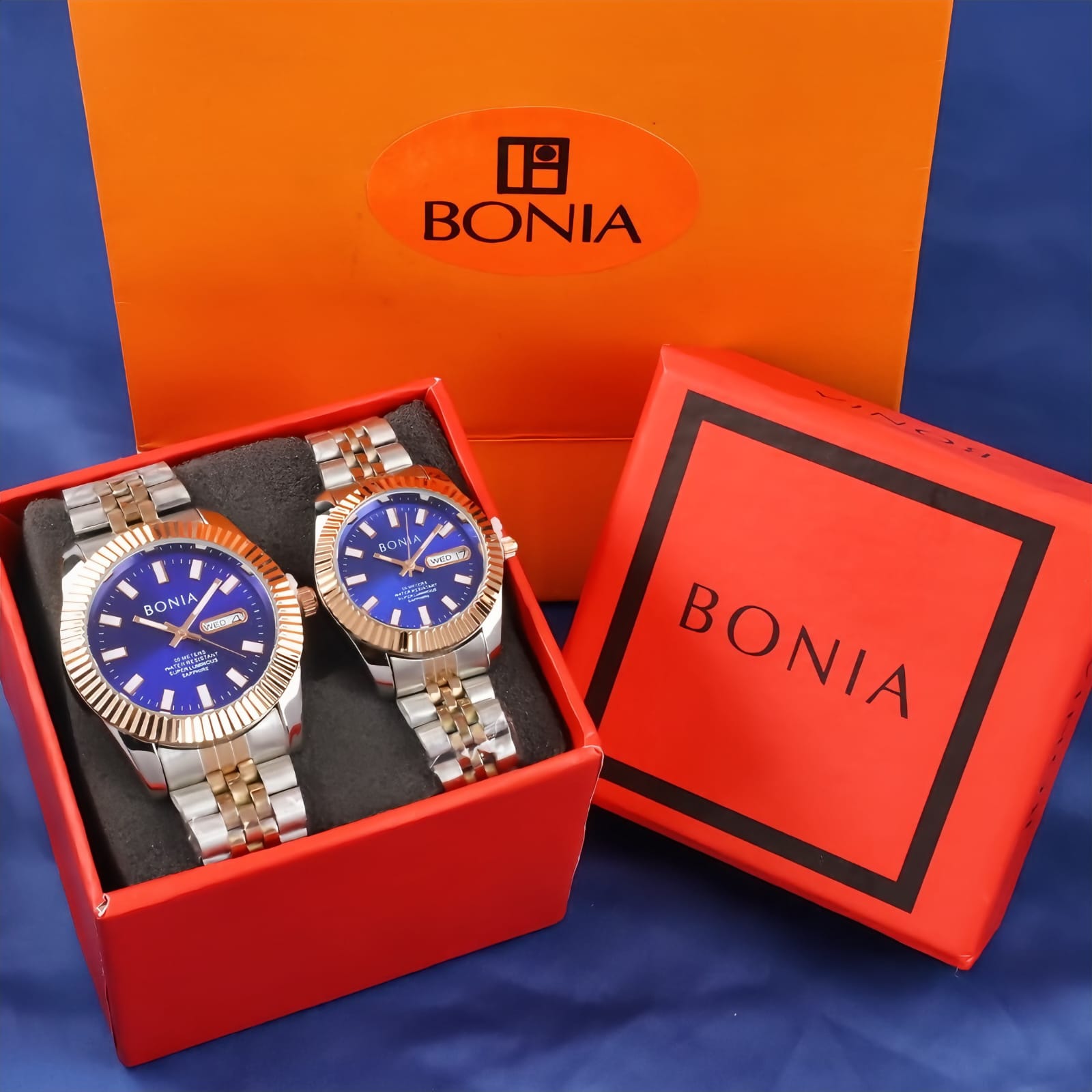 [Star] Jam Tangan Couple Bonia Analog Watches Rantai Stainless Steel Tanggal Hari Aktif Water Resistant