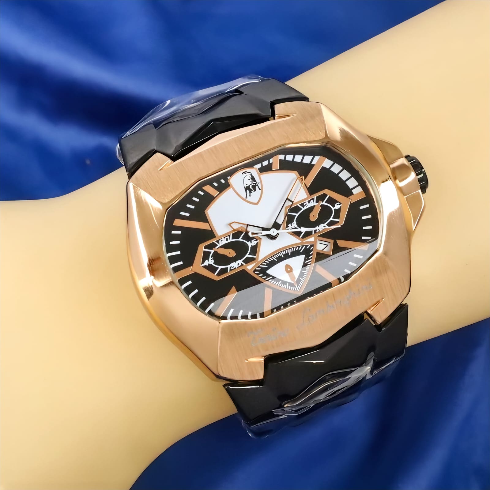 [Star] Jam Tangan Pria Analog Lamborghini Rantai Stainless Steel Tanggal Aktif Free Box Exclusive