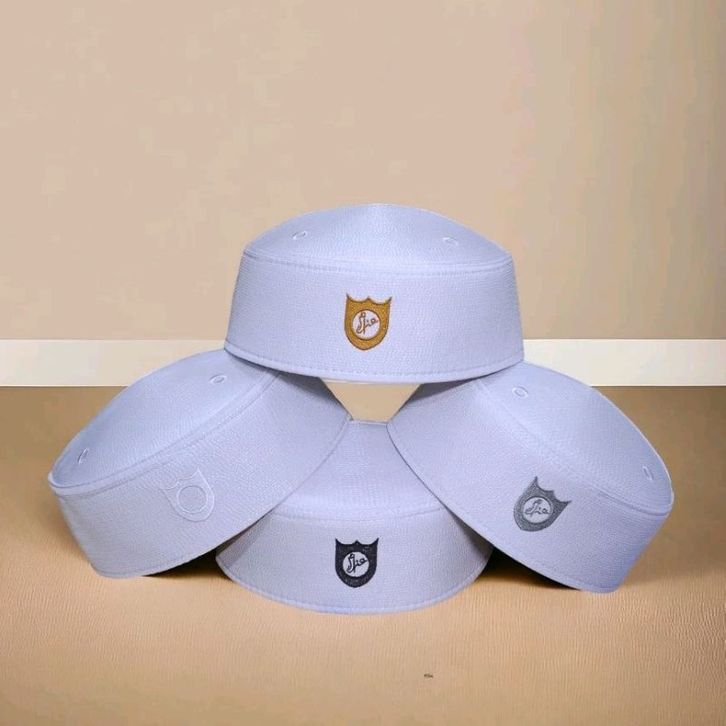 Peci Logo Bordir Malaysia/Peci Haji Putih/Busana Pria Muslim