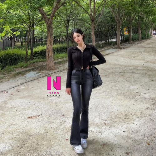 Highwaist Cutbray Jeans Retro Wanita-Celana Jeans Cutbray Wanita Model Retro Korea Terbaru