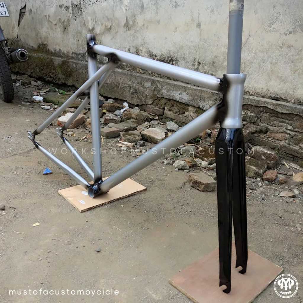 Frameonly Sepeda Fixie Custom Model Triangle Hi-ten Steel - MustofaCustom