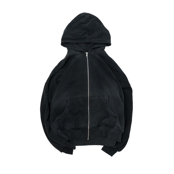 Promo Sun Faded Zipper Hoodie - Aged Black, Fleece, Unisex Elegan
