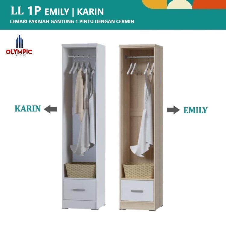[Mall] Olympic Lemari Pakaian Gantungan 1 Pintu 1 Laci Minimalis LL 1P KARIN