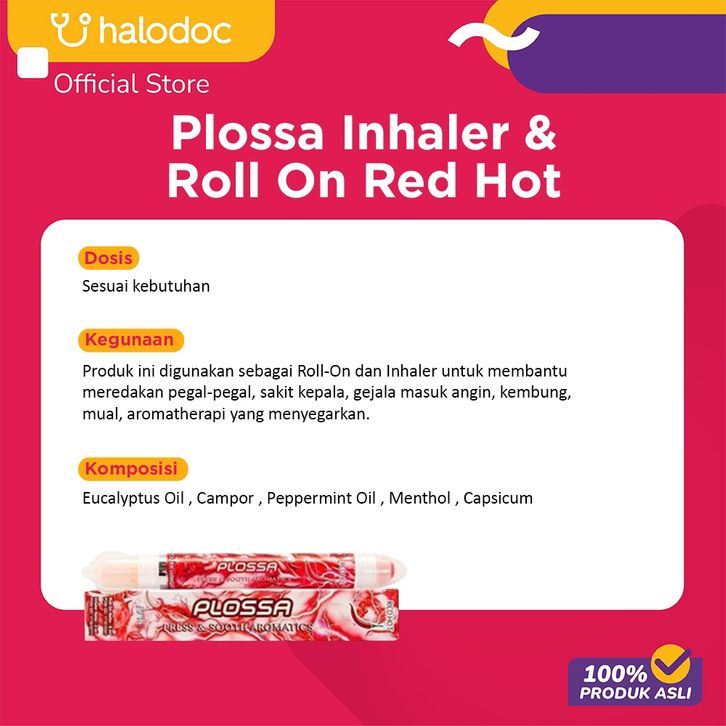 Plossa Inhaler & Roll On Red Hot/ Panasin Pegal Linu Red Hot 8 ml meredakan pegal-pegal, sakit kepala, gejala masuk angi