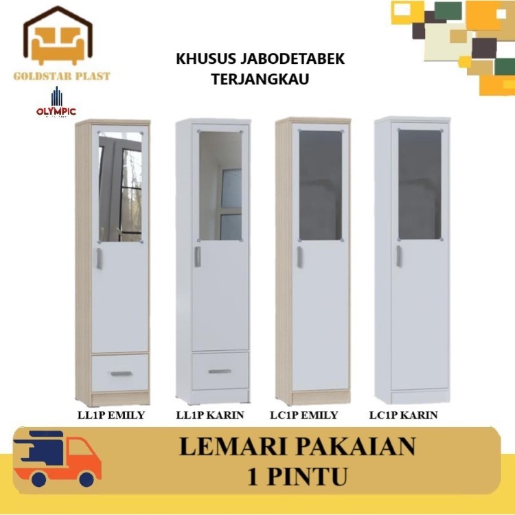 [Mall] Lemari Pakaian 1 Pintu Lemari Baju Gantung Minimalis Putih LL1P LC1P EMILY KARIN