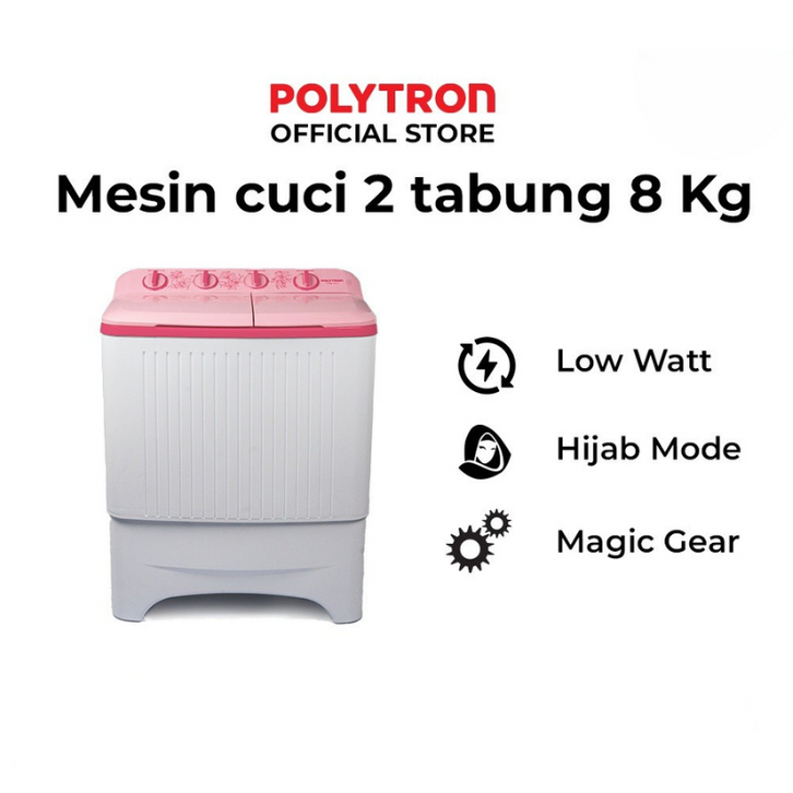 [Star]POLYTRON Mesin Cuci 2 Tabung Giant Series 8 KG - PWM 8073P mesin cuci polytron 2 tabung warna pink murah