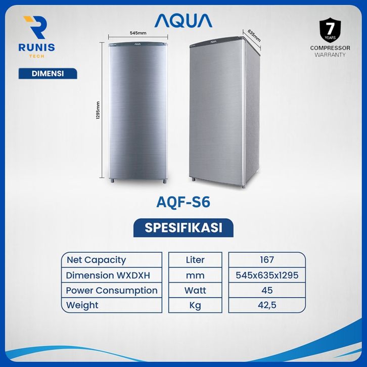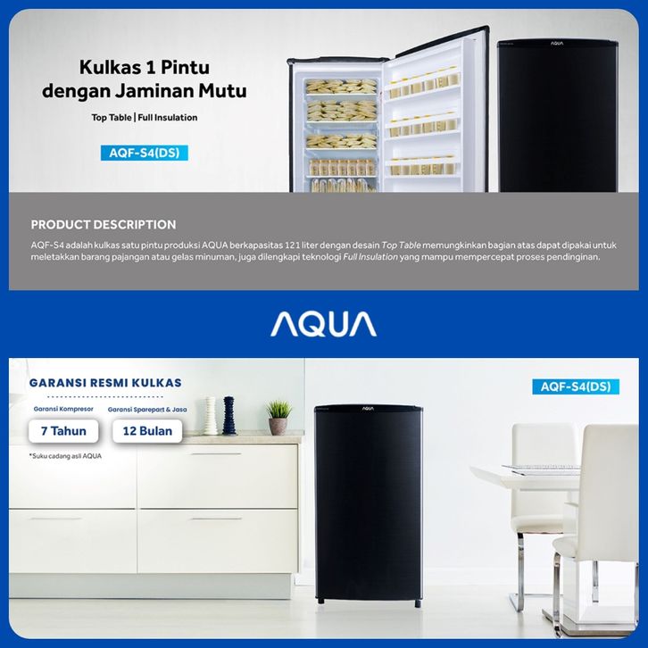 KULKAS 1 PINTU AQUA FULL INSULATION AQF-S4 AQF-S6 121-167 LITER 45 WATT WARNA SILVER LEMARI PENDINGIN GRATIS ONGKIR