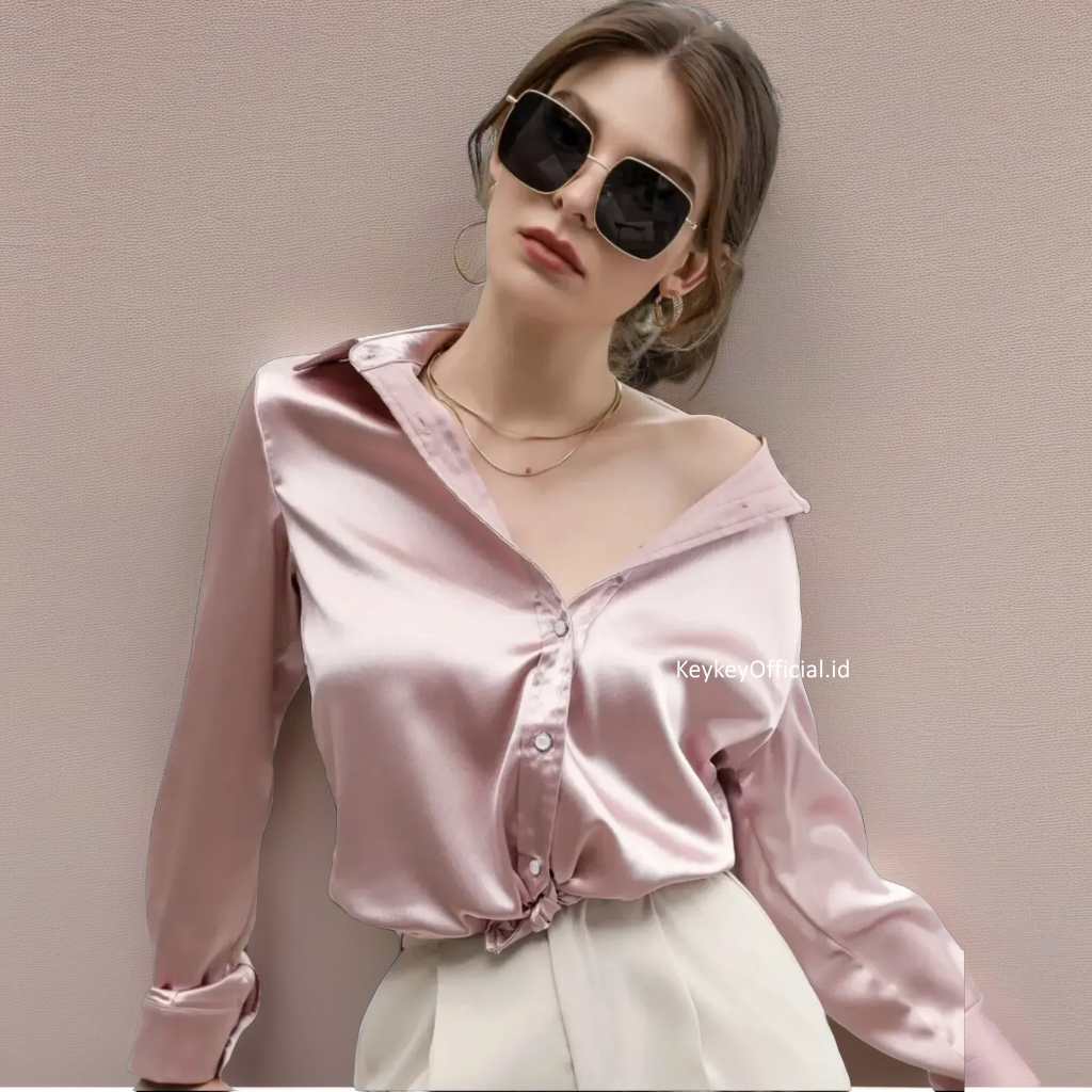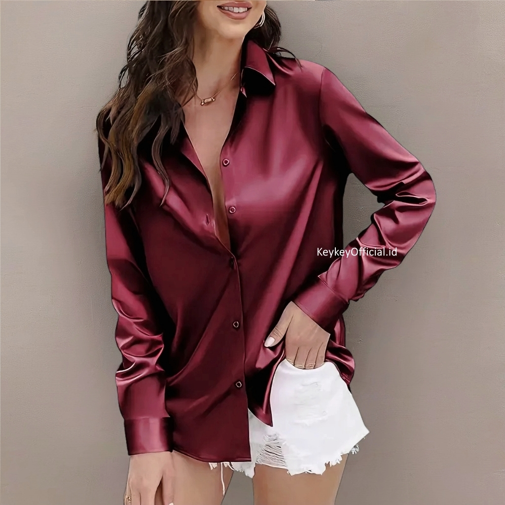 (Gratis Ongkir) Kem VELOVE SATIN VELVET PREMIUM Size XL / Kemeja Wanita Satin Velvet / Atasan Hijabers