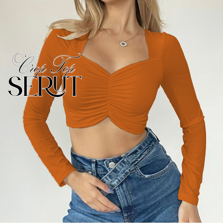 Atasan Crop Top Lengan Panjang - Kaos Wanita Serut Tengah Fashion Korean Style 6056