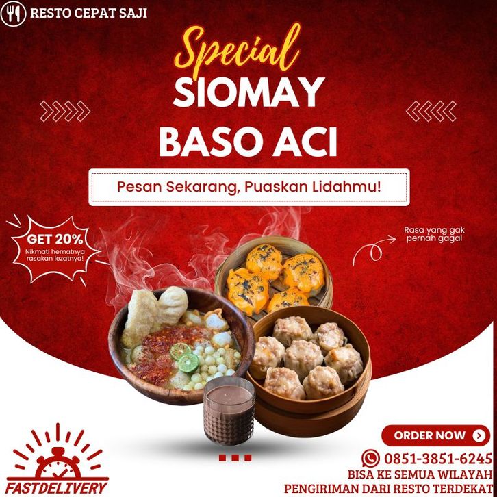 Kuah Bakso Rambutan, Bakso Rambutan Frozen isi 10, Crispy Mashed Potato isi 6, SOMAY SIOMAY HALAL CAMPUR TANPA TELUR (5 pcs), SOMAY SIOMAY HALAL KOMPLIT TELUR, SIOMAY CAMPUR SPECIAL EDITION (8pcs) HALAL, Siomay Ikan Tenggiri Mentaiko 4pcs Halal, SOMAY SIOMAY AJA ISI 6 HALAL, SOMAY SIOMAY AJA ISI 10 HALAL, SOMAY SIOMAY AJA isi 15 HALAL, SOMAY SIOMAY AJA ISI 20 HALAL, Siomay Goreng (Bakso Goreng Ikan)isi 10 Halal, BASO ACI ORIGINAL, BASO ACI ORIGINAL SPECIAL TELUR, BASO ACI TULANG RANGU, BASO ACI TULANG RANGU SPECIAL TELUR, BASO ACI HOT JELETOT, SIOMAY 4 + DUMPLING AYAM 5 + FISHROLL 5, BASO ACI TULANG RANGU 2 PORSI + ORANGE SQUASH 2 + , PAKET HAMPERS SIOMAY / DIMSUM, MIX DIMSUM AYAM 2 + NORI 2 + LUMPIA 2 HALAL, DIMSUM AYAM ISI 6 HALAL, DIMSUM AYAM ISI 10 HALAL, DIMSUM MENTAIKO ISI 4 HALAL, DIMSUM AYAM GORENG ISI 5 HALAL, DIMSUM AYAM GORENG ISI 10 HALAL, DIMSUM LUMPIA AYAM ISI 6 HALAL, DIMSUM NORI ISI 6 HALAL, GYOZA KUKUS AYAM UDANG ISI 6 HALAL, GYOZA GORENG AYAM UDANG ISI 6 HALAL, GYOZA AYAM UDANG MENTAIKO isi 4pcs, Chicken Katsu Single (tanpa nasi), Chicken Katsu Double (tanpa nasi), Cireng crispy isi 10, NASI GILA, NASI IKAN TONGKOL BALADO FREE TELUR, NASI IKAN MANYUNG GEPREK, NASI IKAN MANYUNG KUAH MANGUT, Mie Godog Cuanki Original, Mie Godog Cuanki Pedas Cabe Rawit, Extra saus dimsum, Bumbu kacang, Chili Oil, NASI PUTIH, TELUR, Extra sambal Geprek, ORANGE SQUASH, LIME SQUASH, ICE LEMON TEA, ICE / HOT MILO, ICE MILO DINOSAUR, ICE / HOT CAPUCINO, WEDANG JAHE SEDUH