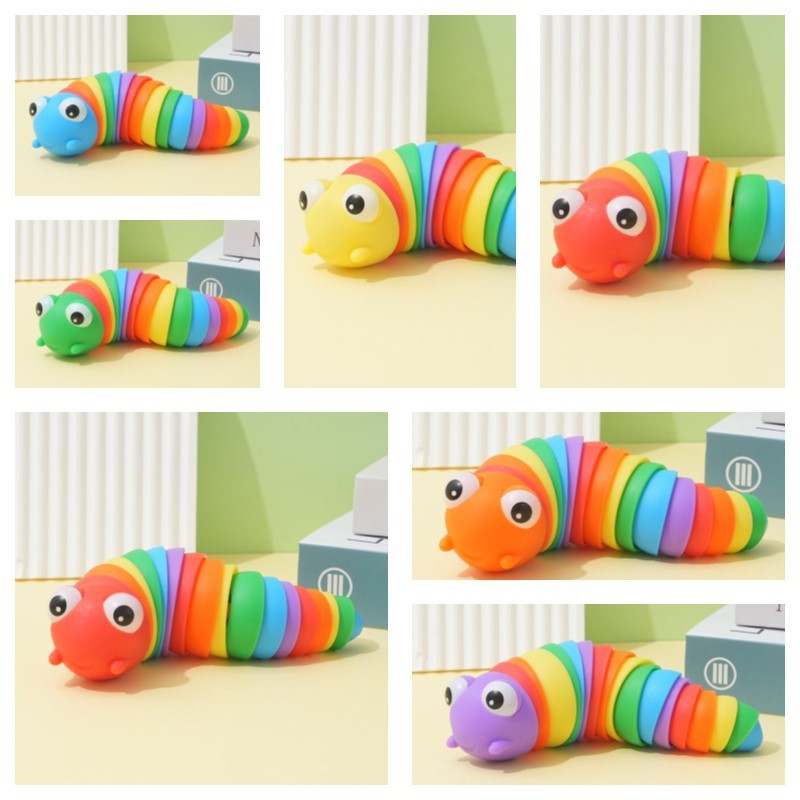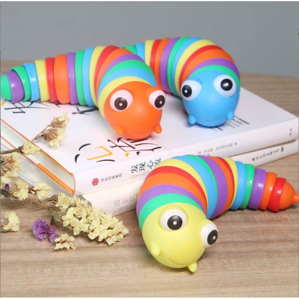 Mainan Ulat Lentur Warna Acak Squishy Rainbow Penghilang Stress Bahan ORIGINAL TERLARIS