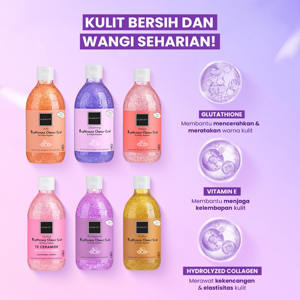 [Mall] Scarlett Whitening 4pcs Bodycare Daily Routine Brightening(Body Lotion + Body Serum + Shower Scrub + Body Scrub)