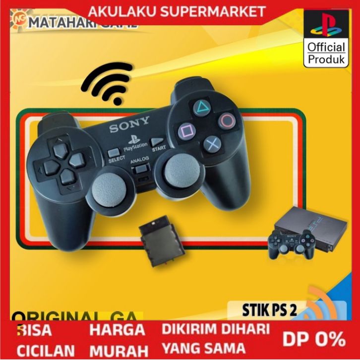 Stik gamepad joystik PS2 Wireless Sony Original Pabrik Hitam