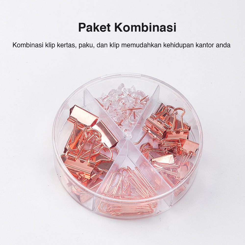 Deli Office Combination Penjepit Kertas / Paper Clip Binder Clip and Push Pin Rose Gold 78553