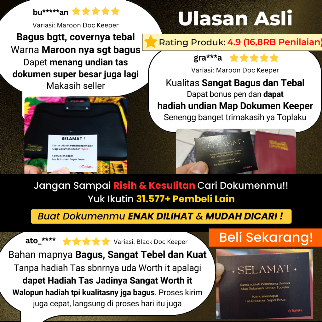Map Dokumen Keeper Ijazah RESLETING ANTI AIR Document Clear Holder Plastik Tempat Folder Berkas DK8