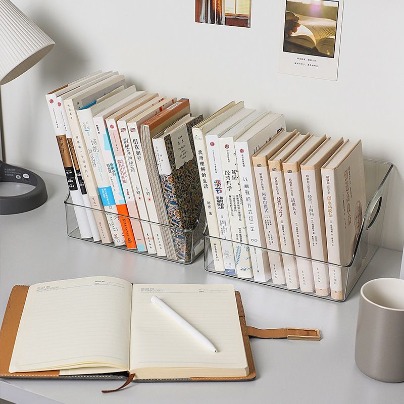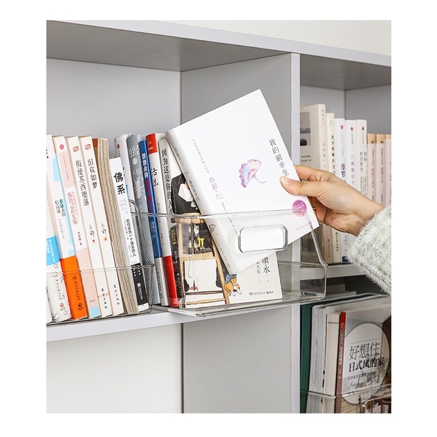Kotak Penyimpanan Buku Serbaguna Akrilik Transparan Rak Buku Container File Organizer Box Storage