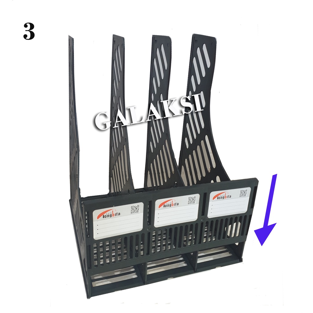 Box File Plastik 3 Susun Warna Abu-Abu, Hitam, Biru