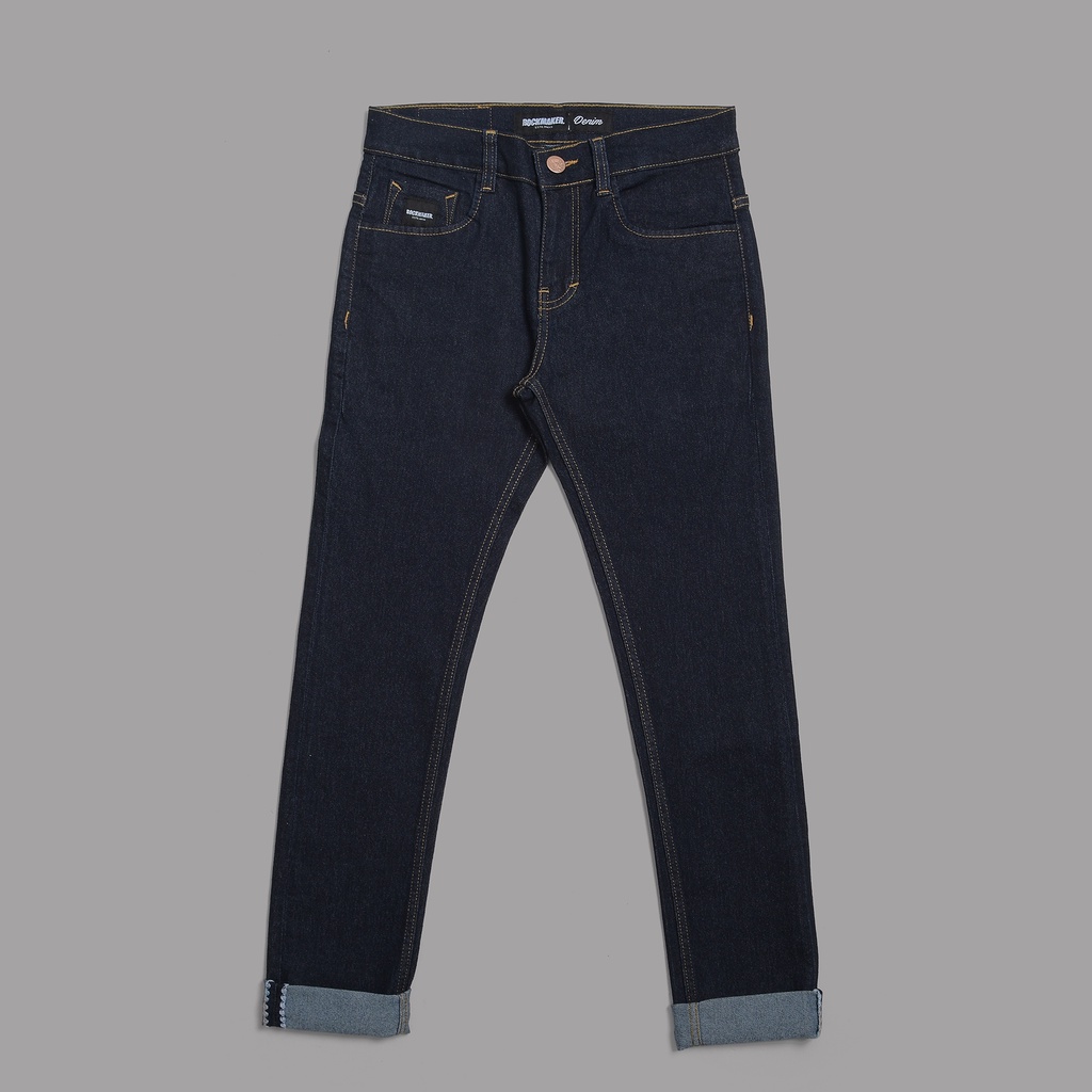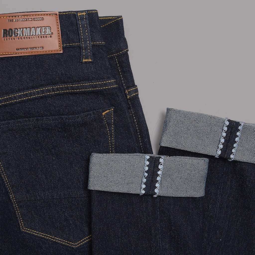 Rockmaker Celana Denim Slim Fit Selvedge Accent Dark Indigo White Celana Jeans Pria Celana Kasual Pria Skena Original