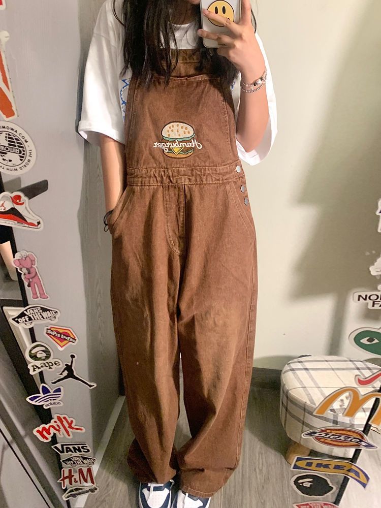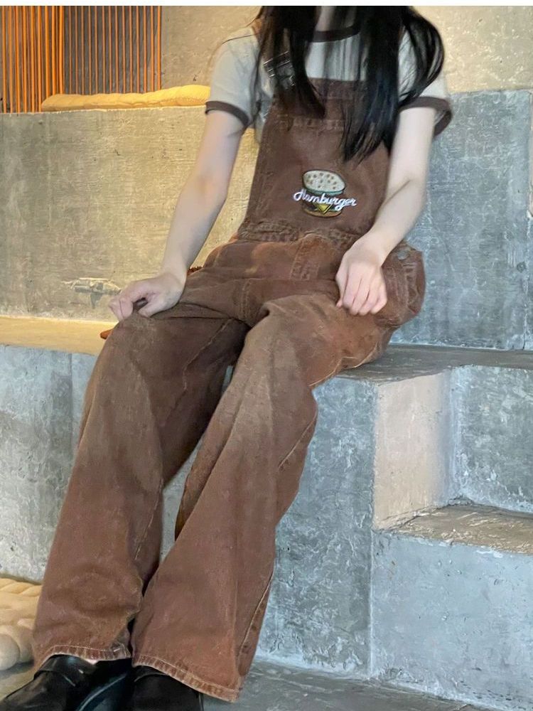 [NANA]Jumpsuit overall denim cokelat retro Amerika 013