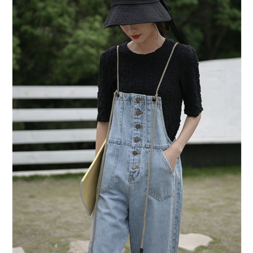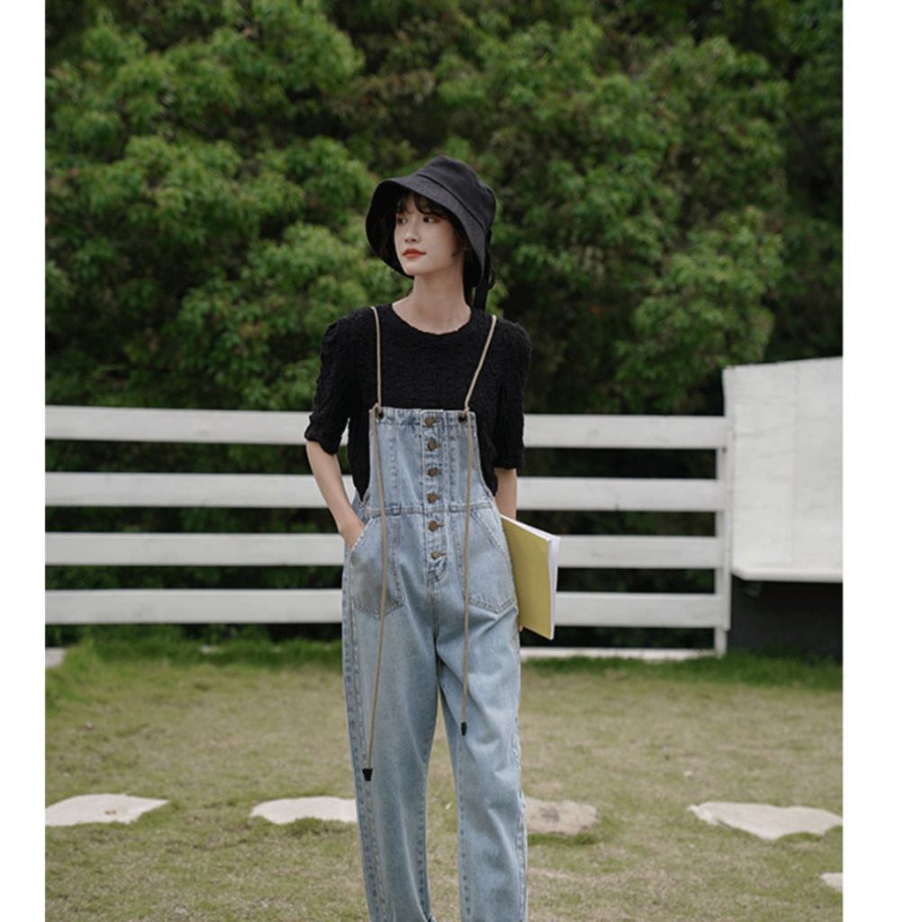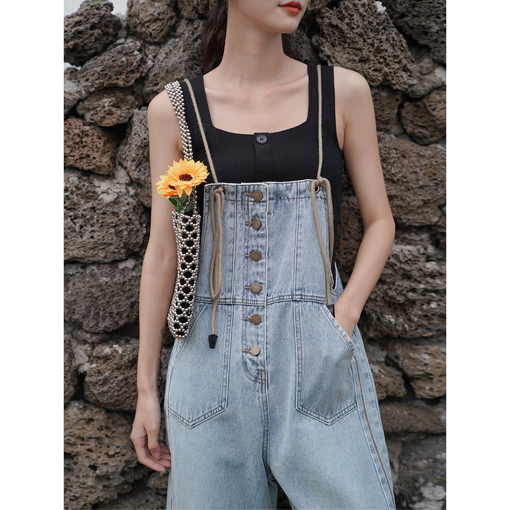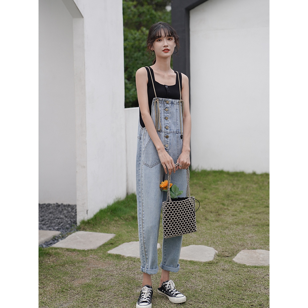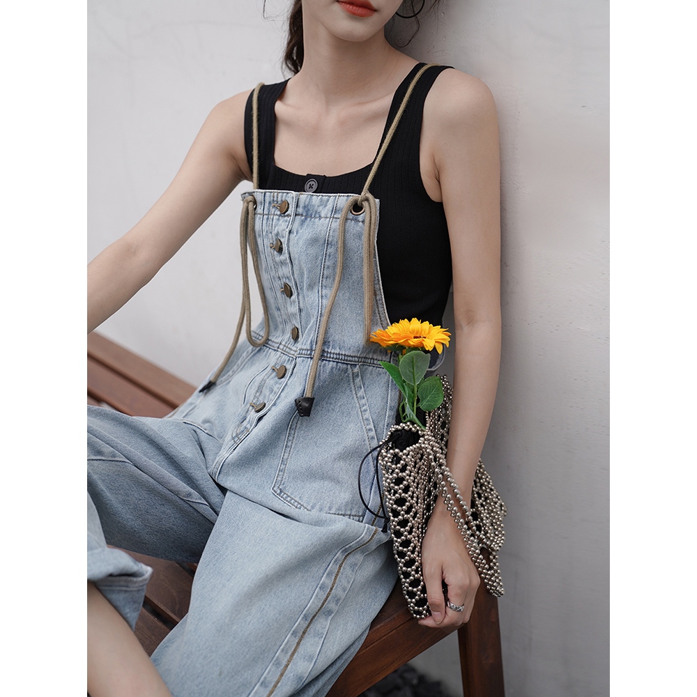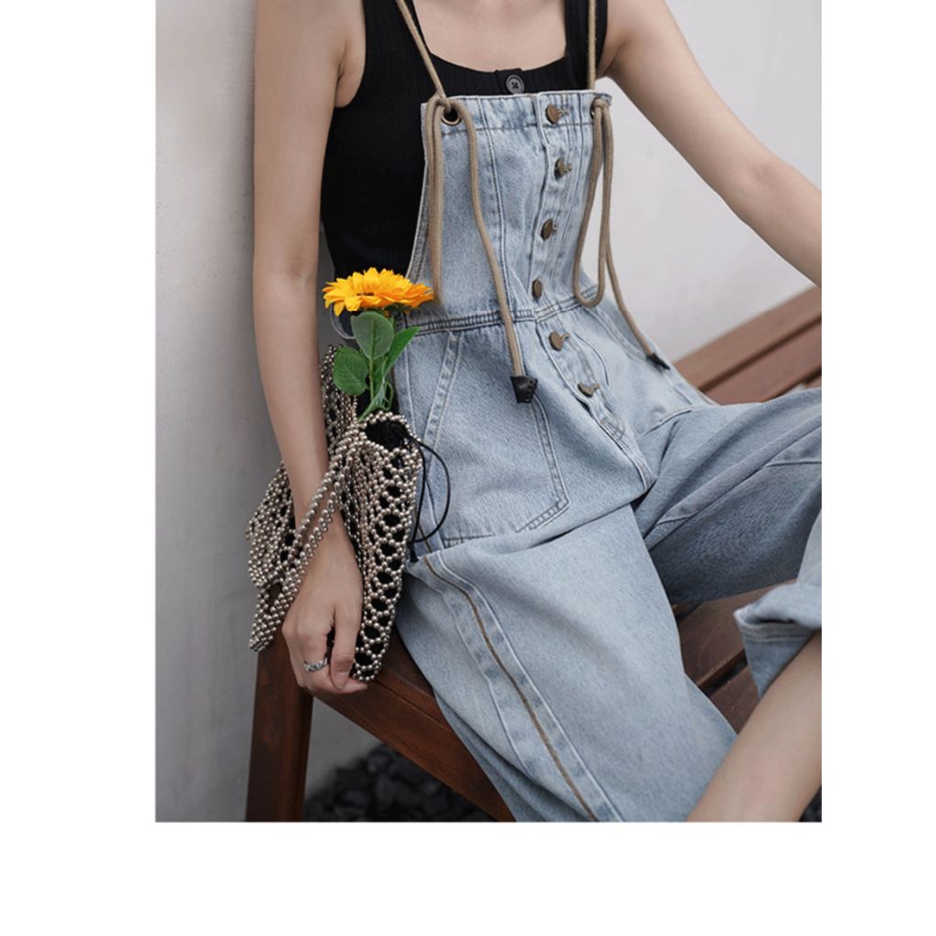 [NANA]Celana Tali Denim, Celana Jeans, Longgar Murid Sembilan Celana Sembilan Titik Surut 005