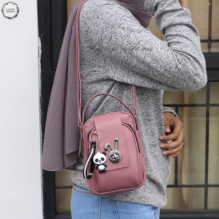 Terlaris Luna Aura Tas Pouch Hp Wanita kelinci 3 Ruang Slingbag Hp Kekinian Tas Hp Koin Termurah Tas ootd - Hitam Promo