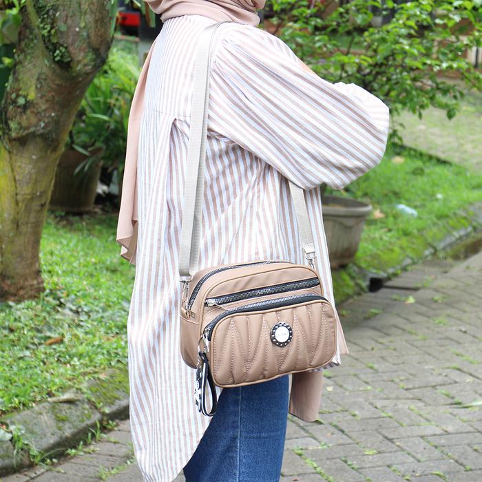 Murah LUNA AURA Tas Selempang Bahu Wanita Briana 3 Ruang New Bordir IW 97 Slingbag Cocoly Terbaru Tas ootd - Hitam Promo