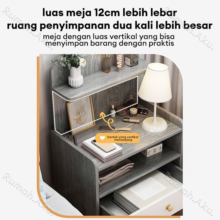 Meja Nakas Minimalis Kamar Laci 2 Laci Kayu Bedside Table Lemari Penyimpanan Nakas Minimalis 37X30X70CM RA
