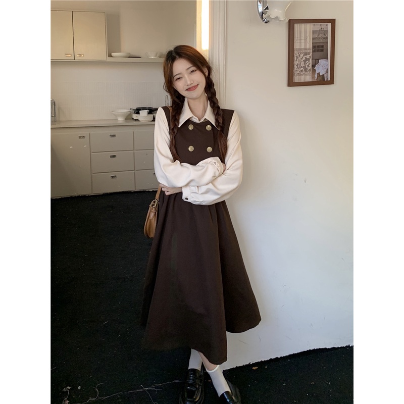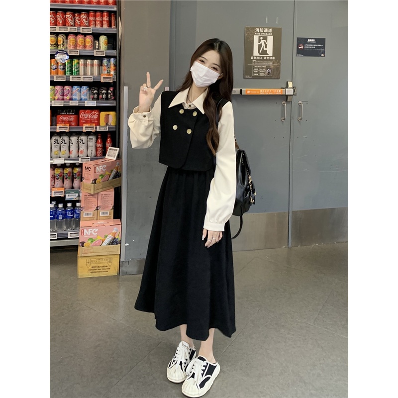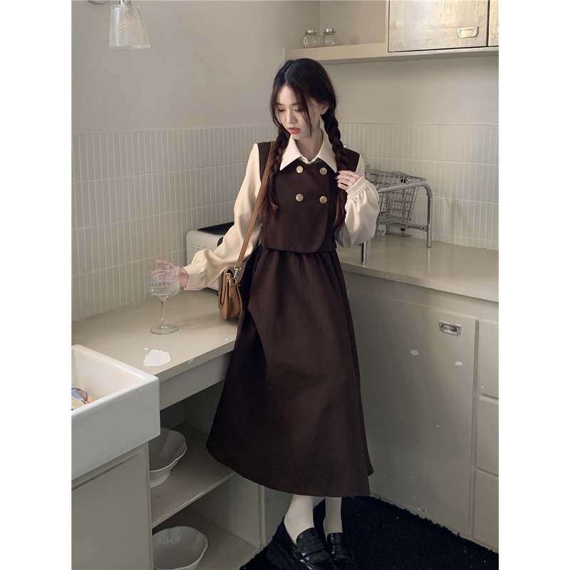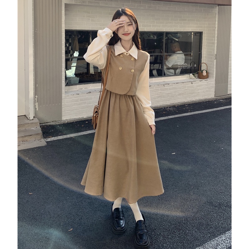 Dress Retro Kasual Wanita Gaya Korea Dress Lengan Panjang Kerja Longgar / Dres Terbaru Kekinian