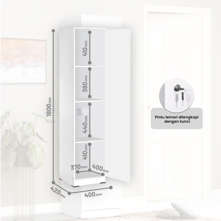 [Mall] Lemari Pakaian 1 Pintu Lemari Baju Gantung Minimalis Putih LP Dominic
